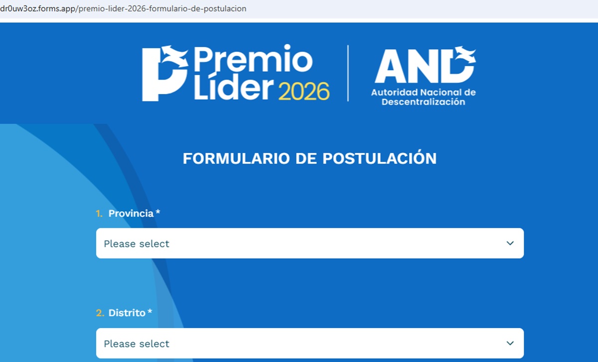Autoridad Nacional de Descentralización invita a alcaldes y representantes a postular sus proyectos al Premio Líder 2026